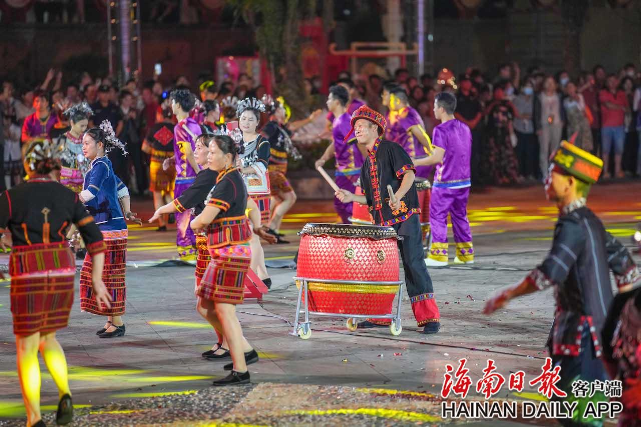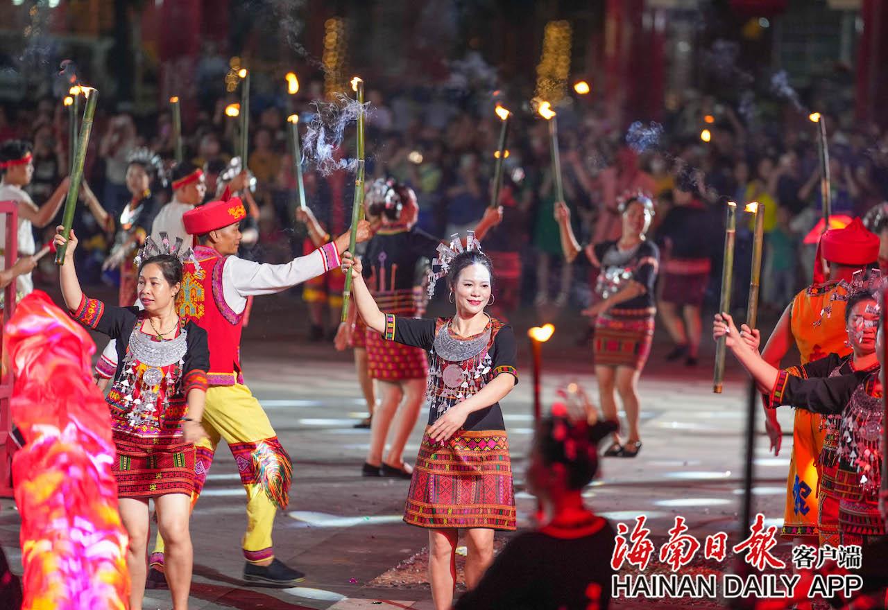 4月17日,在五指山市通什鎮的三月三廣場,黎族群眾持火把跳起共同舞。海南日報記者 李天平 攝