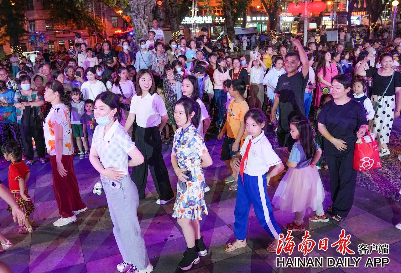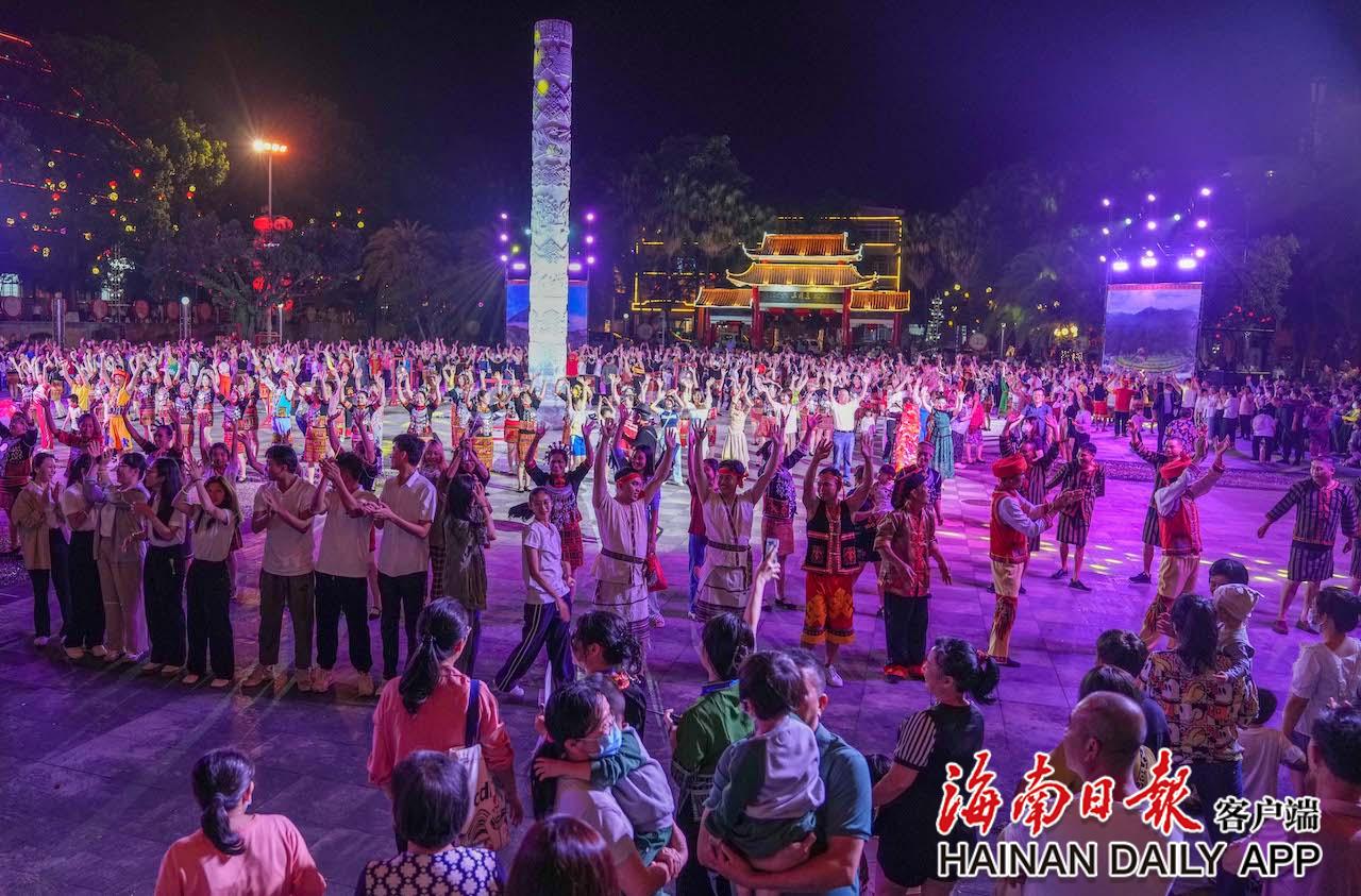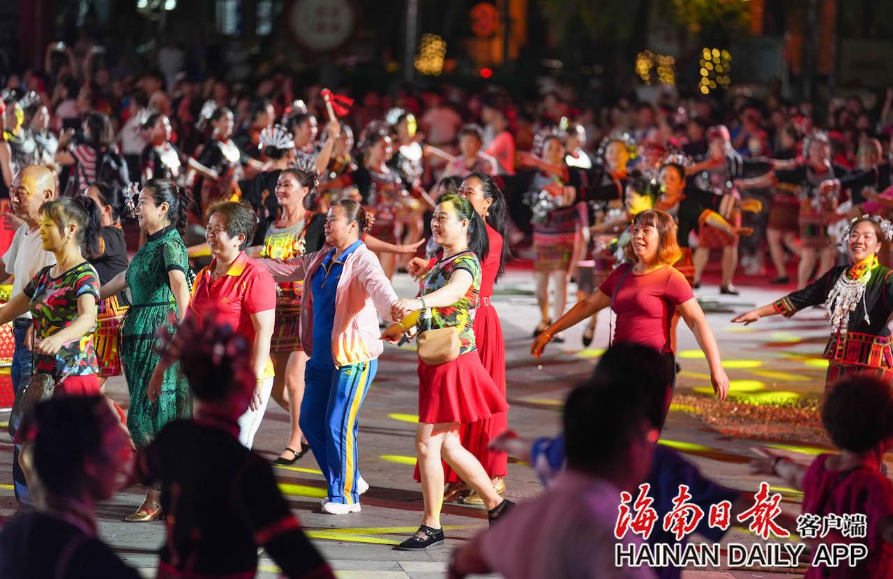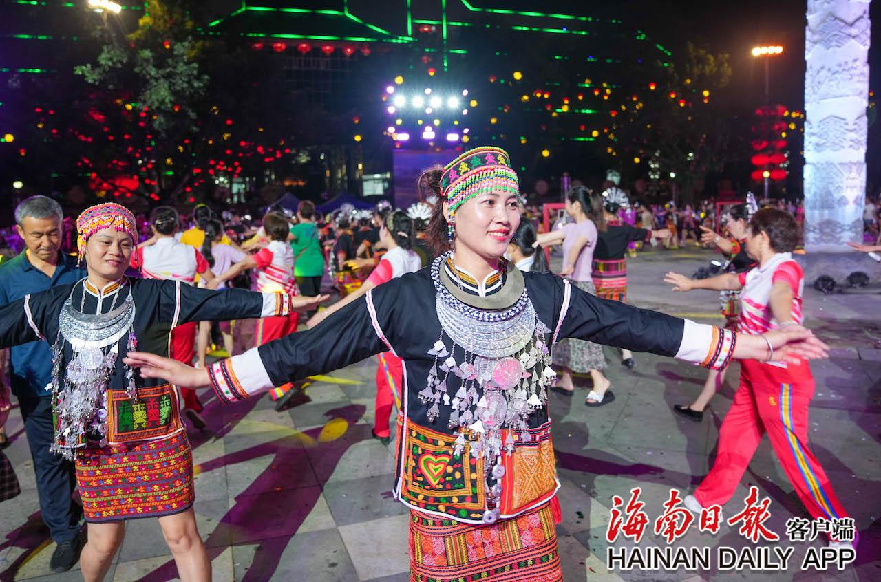 4月17日,在五指山市通什鎮的三月三廣場,市民游客參與到共同舞中。海南日報記者 李天平 攝