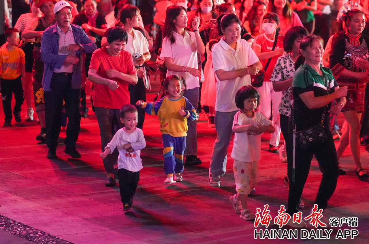 4月17日,在五指山市通什鎮的三月三廣場,家長帶孩子參與到共同舞中。海南日報記者 李天平 攝