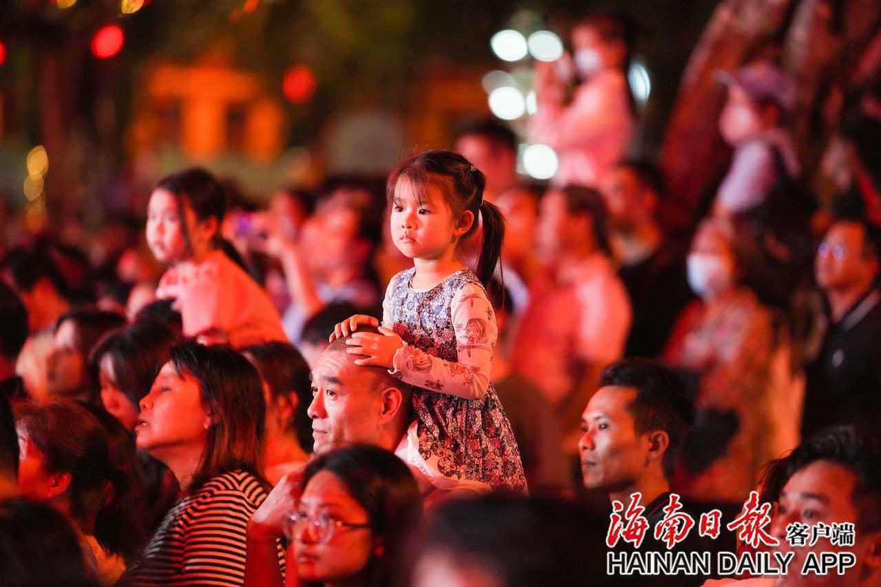 4月17日,在五指山市通什鎮三月三廣場,眾多市民游客前來觀看千人共同舞。海南日報記者 李天平 攝