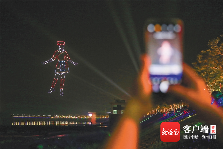 4月21日晚,樂東舉辦無人機(jī)展演迎接“三月三”到來。圖為燈光秀展演活動(dòng),300架無人機(jī)組成苗族姑娘的圖案。海南日?qǐng)?bào)記者 王程龍 攝