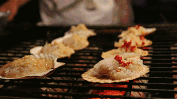 經過短時間的火烤,生蠔開始一點一點地流出清透的汁水,放入專門調制的蒜蓉醬料,以及只需要一點就辣到不行的小米椒,香氣四溢。一口吸溜,瞬間滿足。