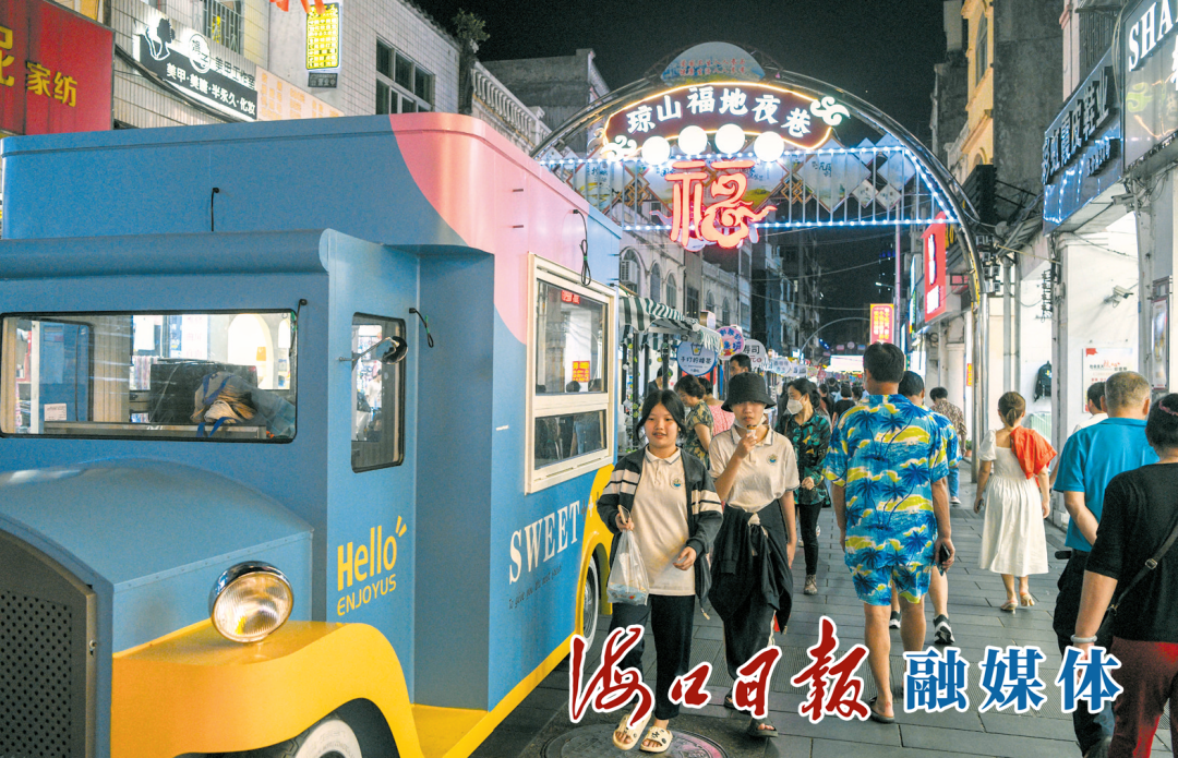 福地夜巷以巷文化為主題,主打老街古風特色,集合商業、旅游、文化為一體,通過與原有業態相結合,探索培育新業態、新模式、新場景。在這條久負盛名、充滿文化氣息的商業老街上,匯集了海南“老字號”傳統美食,更有全國47個省市地方特色小吃、網紅甜品、潮品百貨等。黃色燈帶下,一個個仿古的小型街景餐車開門營業,將傳統文化與現代商業交融,充滿了藝術氣息。