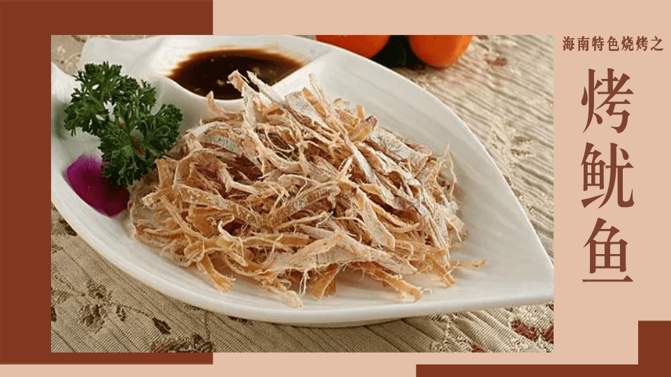 在海南,吃燒烤時點上一只曬干的魷魚,經過炭火烤之后,用手撕魷魚,配上醬油和芥末,那叫一個美滋滋。