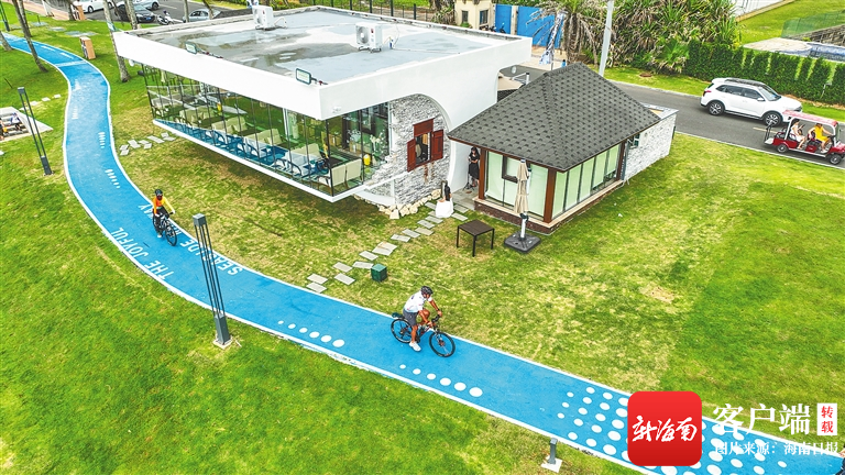 近日,在海南環(huán)島旅游公路瓊海博鰲段,市民游客在海濱小道和觀景臺上騎行、觀光。