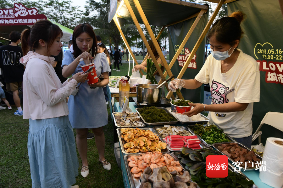 “有得逛、有得買、有得吃,有得樂”主打一站式吃喝玩樂,為期三天的I LOVE海口城市主題市集當(dāng)晚一開市便人氣十足,這里匯聚了海口頭部旅行社產(chǎn)品展銷區(qū)、“這一口 很海口”生活方式展示區(qū)、海口免稅互動區(qū)、“海口+6”市縣旅游產(chǎn)品及商品展銷區(qū)、mini海南雞飯市集五大區(qū)域,集中展示海口、澄邁、文昌、定安、瓊海、屯昌、五指山7市縣旅游產(chǎn)品、特色美食等旅游文化資源。