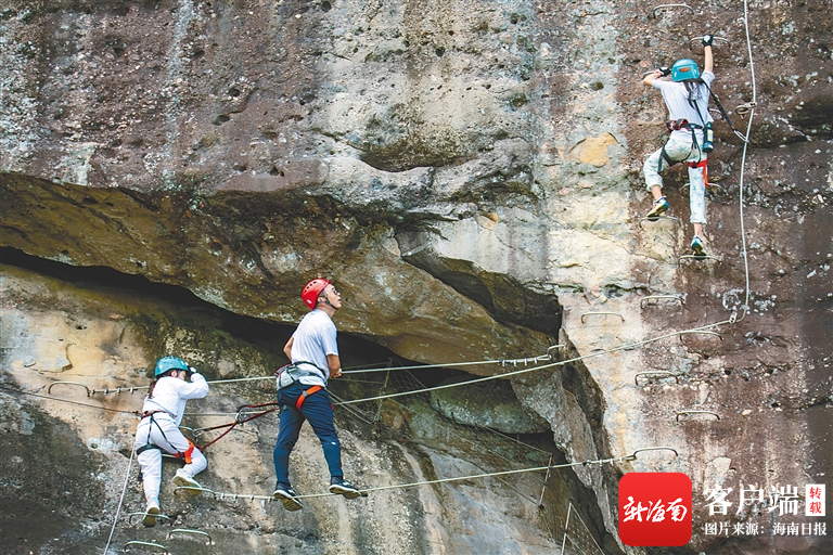 ?游客在瓊海白石嶺景區體驗攀巖項目。特約記者 蒙鐘德 攝