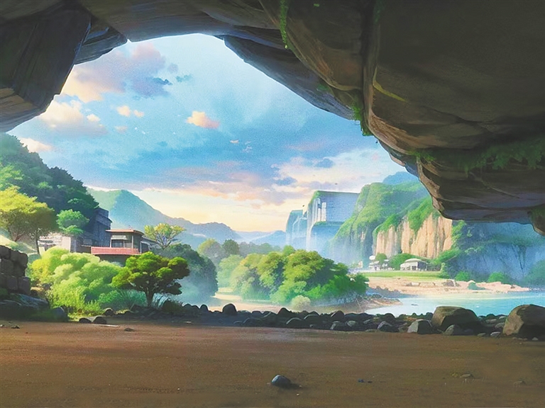 用宮崎駿的畫風描繪的昌江皇帝洞。圖片來源:Nicole姐姐(小紅書)