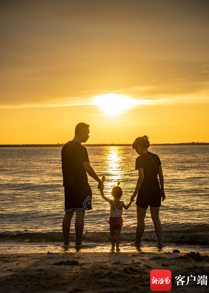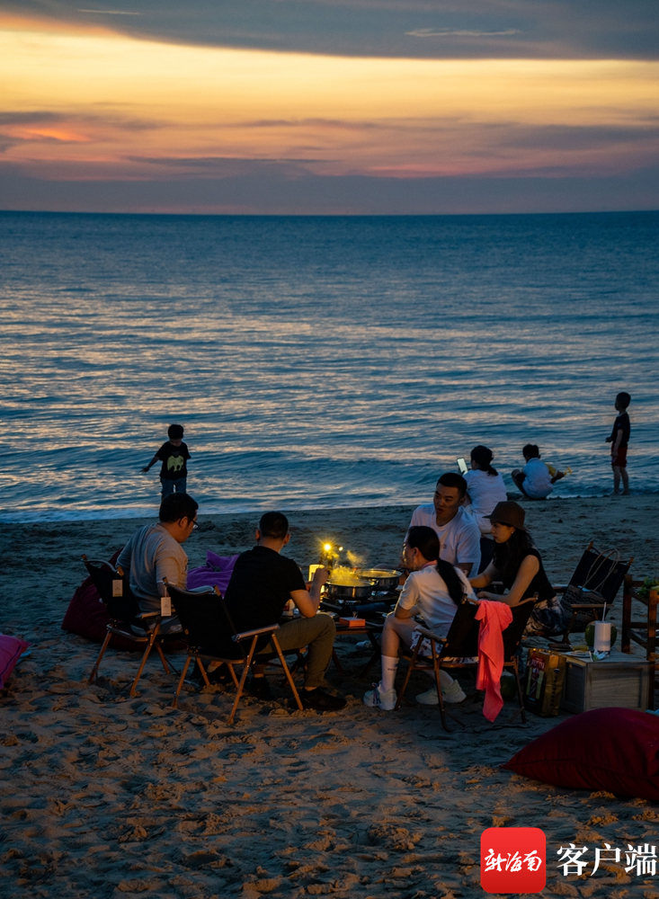新海南客戶端、南海網、南國都市報5月26日消息(記者 劉孫謀)5月26日下午6時,在??谑袟0堵稜I基地,一場降雨過后,??诔霈F美麗的晚霞,金色的陽光灑在沙灘上,吸引了許多市民前來游玩拍照,有不少市民在沙灘上戲水,還有市民在此一邊喝椰子水一邊打邊爐,美景美食相伴,好生愜意。