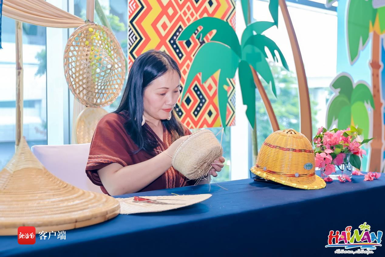 推介會(huì)現(xiàn)場(chǎng),黎族手藝人展示手藝。海南省旅文廳供圖