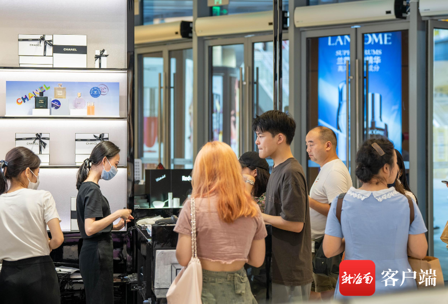 新海南客戶端、南海網6月29日消息(記者 劉洋 通訊員張可)6月29日下午,記者在中免集團??谌赵聫V場免稅店看到,各類優惠活動吸引來眾多離島游客前來選購免稅商品。